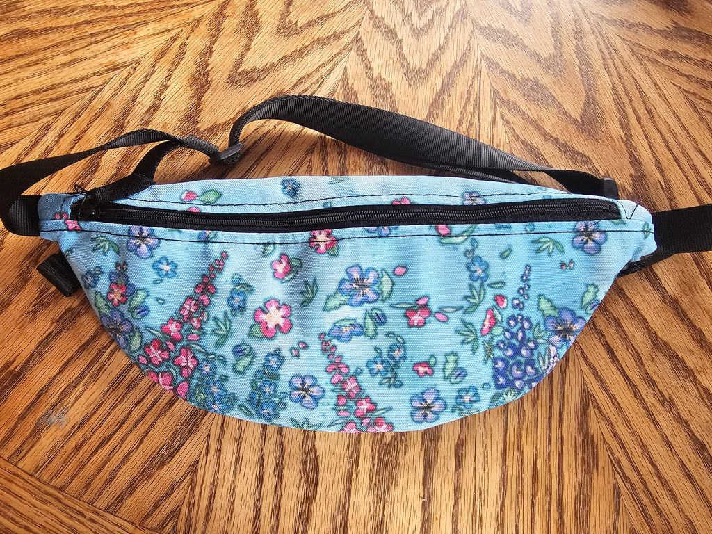 Fanny Pack with wild rose, fireweed, forget me not, lupine and wild geranium .