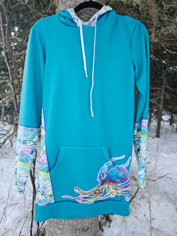 Made with a lovely, light weight and breathable french terry fabric. Form filling, tunic length.